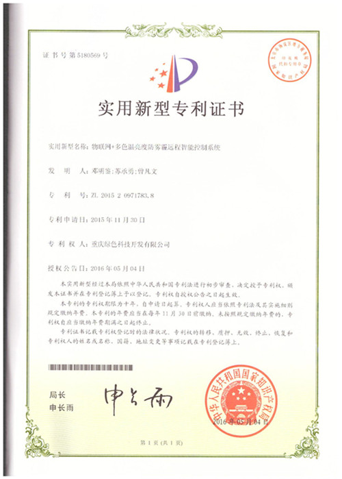 Our research and development of "Internet of things + multi-color temperature, anti haze remote intelligent control system" on November 2015 30 to the State Patent Office filed a patent. In May 2016, 4, the State Patent Office approved the patent granted (patent number: 201520971783.8). This patent has stimulated the enthusiasm of all employees in the company's scientific and technological innovation. Our company will make persistent efforts to continue to do a good job in scientific and technological innovation work, to bring forth the new, to obtain more patents.