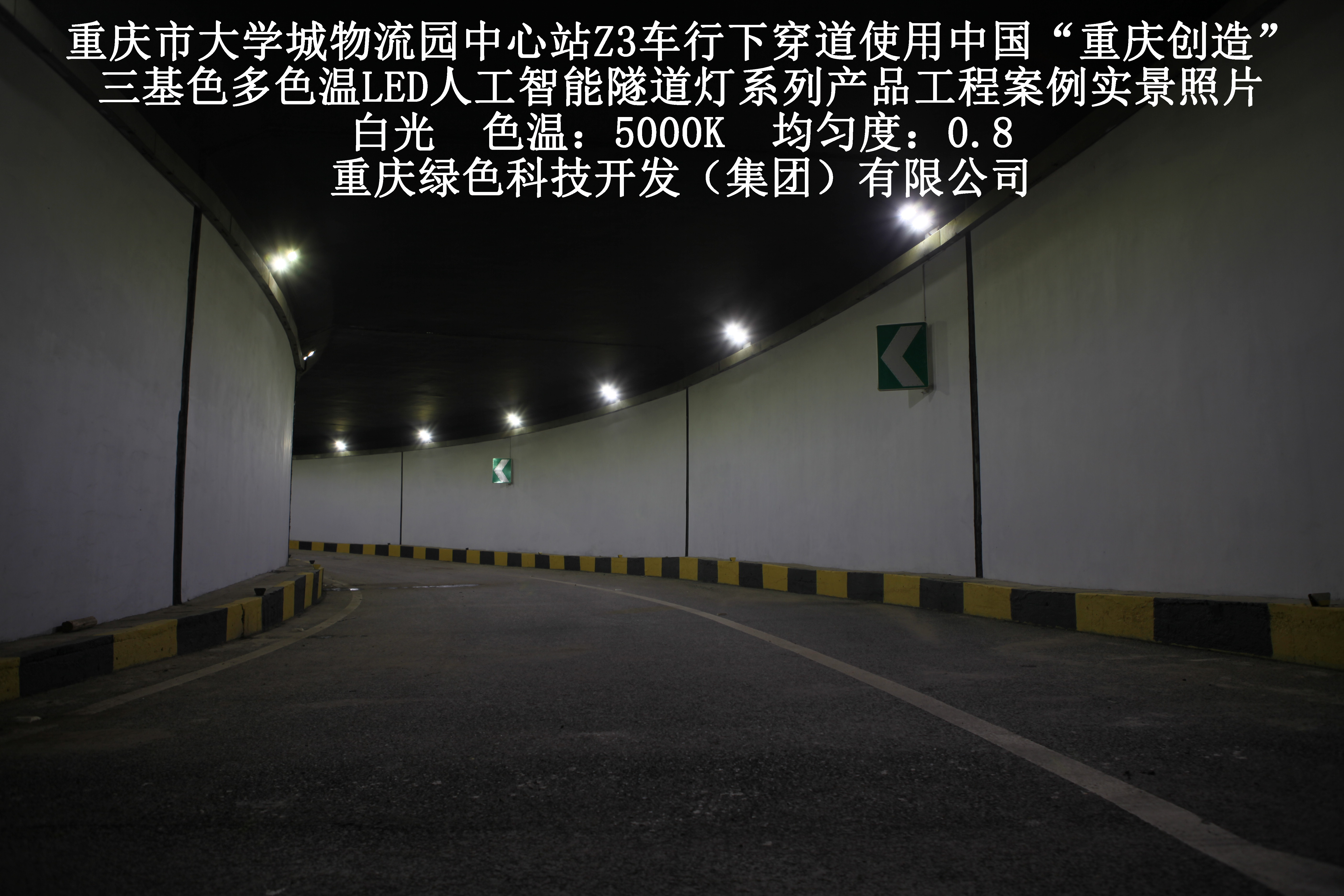 2019年3月,重慶市大學(xué)城物流園中心站Z3車行下穿道使用我司自主研發(fā)制造的,重慶“中國創(chuàng)造”三基色多色溫LED人工智能隧道燈系列產(chǎn)品,實(shí)施了市政設(shè)施品質(zhì)提升工程(工程案例實(shí)景照片附后)。此項(xiàng)目的實(shí)施,極大地提高了隧道內(nèi)照明清晰度、燈光均勻度、舒適度及照明安全性,實(shí)現(xiàn)了隧道照明系統(tǒng)的智能化管理。